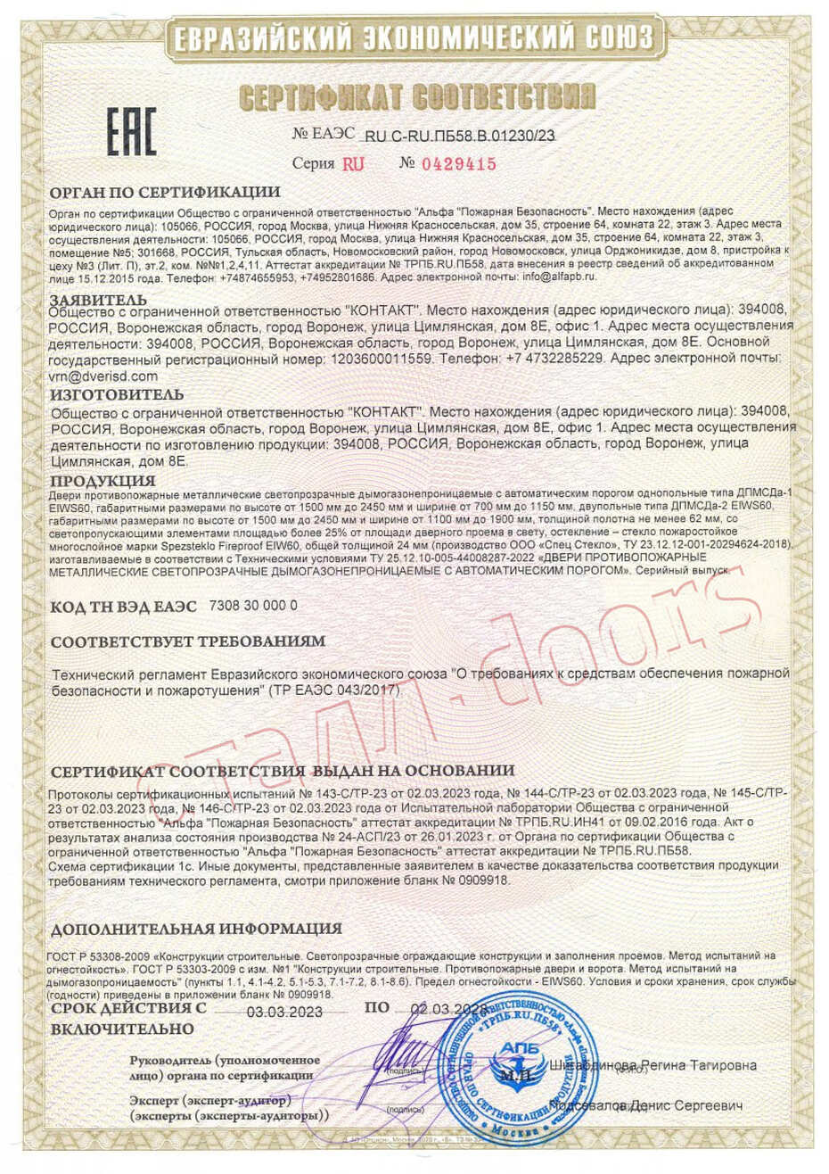 ДПМО-1 EI-90 с прямоугольным окном с автопорогомПод заказ